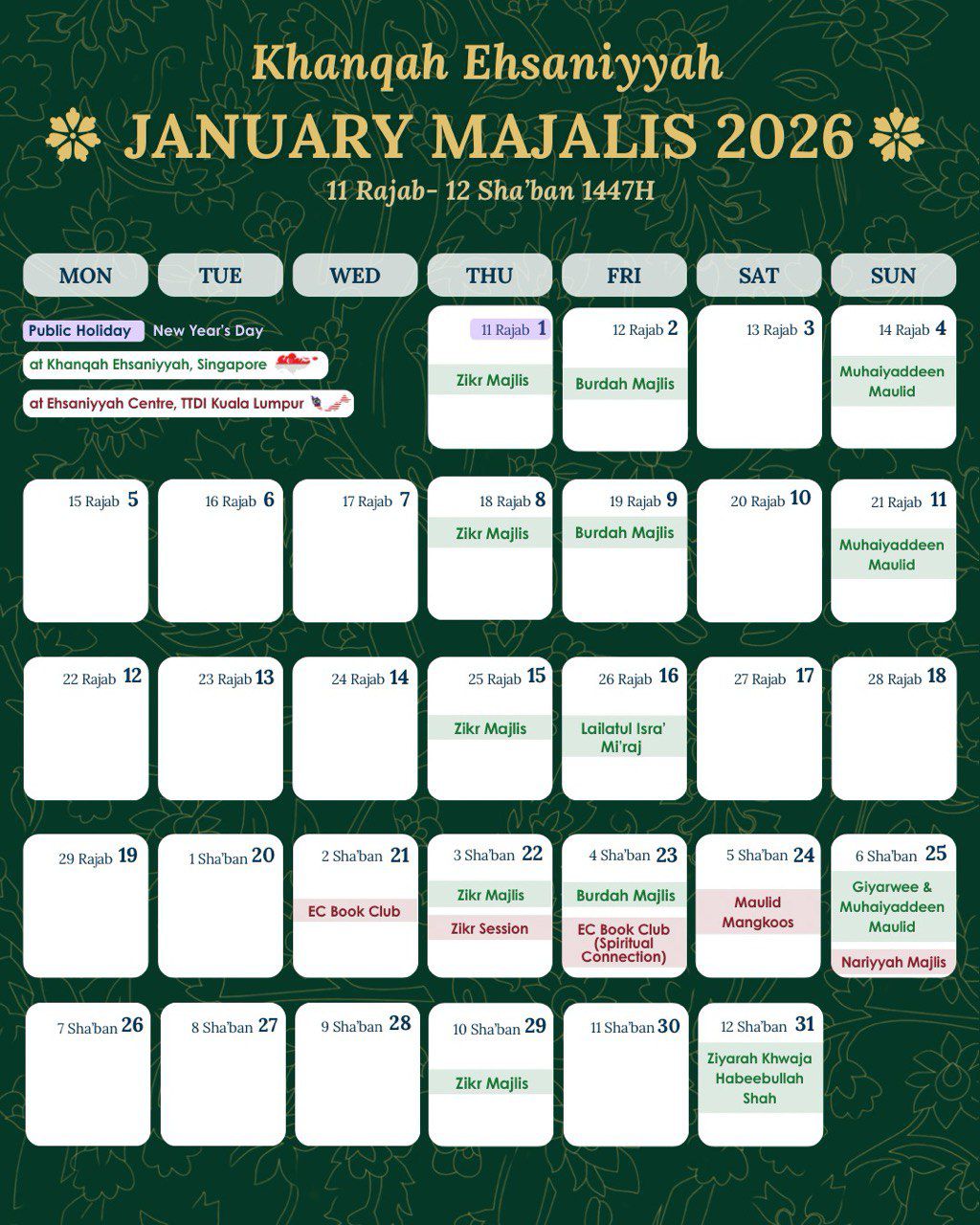 We invite you to join us for our majalis and gatherings in the month of Rajab/Sha’ban at Khanqah Ehsaniyyah!